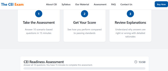 Description: Tiered pricing for access to the AI-powered CEI exam preparation platform and study materials.